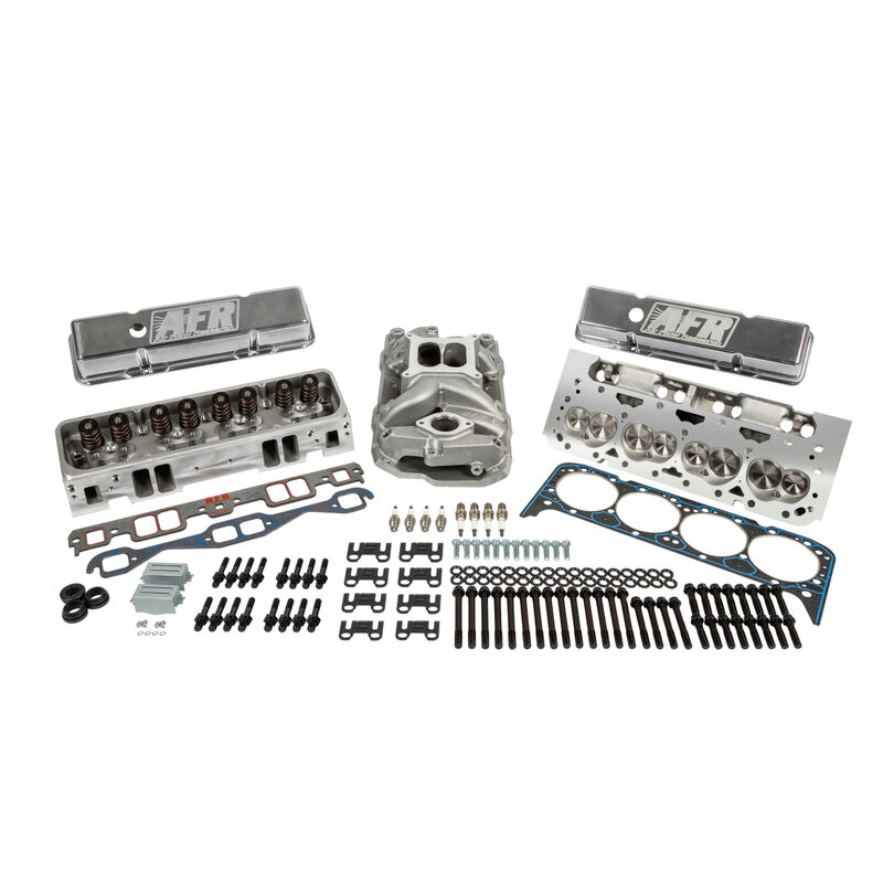 AFR"™s NEW Enforcer Series Top End Kits are perfect for customers looking for the ultimate bolt-on power upgrade for their small block chevy engine. We have created a package that leaves the guesswork behind, using premium AFR components you can trust. Our SBC Enforcer series kit is available in straight or angled spark plug styles using our Enforcer Series 200cc cylinder heads and paired with our low-profile Enforcer dual plane intake manifold. Order one of these AFR top end kits today and put your engine on track for some serious horsepower.