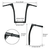 Attitudes Inc's Bonanza Ape Hangers are available in different sizes from 10" to 18". Bars are 1-1/4" thick and incorporate wiring holes, riser clamp area is 1" so that standard risers and handlebar controls can be used. Available in chrome and black powder coat.