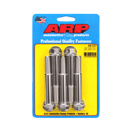 ARP Bolts, Hex Head, Stainless Steel, Polished, 3/8 in.-16 RH Thread, 3.250 in. UHL, Set of 5