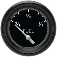 AutoCross Gray 2 5/8" Short sweep fuel level gauge, 0-90 ohm, with matte-black performance bezel and flat glass lens.
