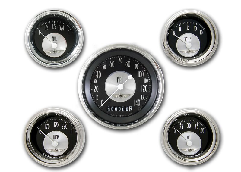 All American Tradition 3 3/8" Speedo, 2 1/8" Fuel, Oil, Temp, Volt with Stainless High Step Bezel Curved Glass Lens ECM or VSS Speedo Signal *