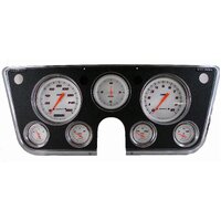 The 1967-72 Chevy Truck Package with our Velocity White Series installed, features a 4 5/8" Speedometer and tachometer, 3 3/8" Clock, and 2 1/8" Fuel (0-90 OHM), Oil, Temp, and Volt gauges. A blue LED high beam indicator is installed in the speedometer. TThe set includes pre-wired electrical connections, mounting hardware, all necessary* sending units, and a wiring harness constructed of automotive grade TXL wire, machine-crimped terminals, tech-flex sleeving, and Molex main connectors. It is equipped with our ZST™ and works directly with ECM or VSS signals so no additional control box is needed. *Fuel sending unit not included, fuel gauge is calibrated to stock 0-90 OHM. **Dash bezel not included.