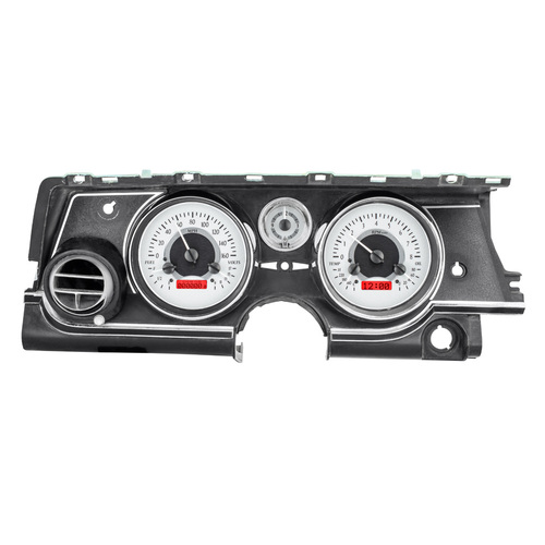 Dakota Digital Gauge Kit, 1968- 69 For Buick Skylark, Analog, Silver Background, Alloy Style Face, Red Display