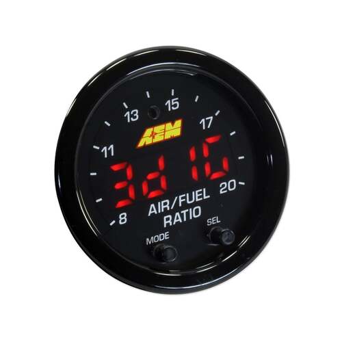 AEM Gauge, X-Series Wideband UEGO Air/Fuel Sensor Controller Gauge, Digital, 8.0:1 - 20:1 Air/Fuel Ratio Range, 2 1/16 in, Black Face, Red Numbers, K