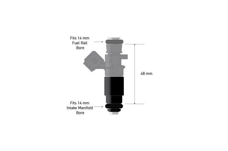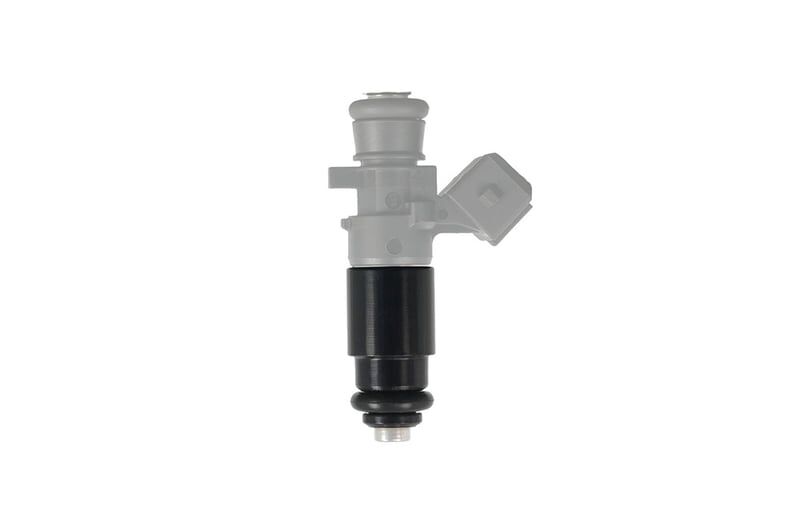 This fuel injector adapter allows a 1/2 length (34 mm) injector with extended tip, 14mm top and bottom O-rings to be installed as a 3/4 length (48 mm) injector.