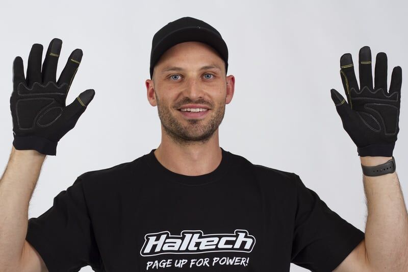 Designed specifically for automotive professionals, Haltech's Workshop Gloves offer superior protection and performance while retaining the tactility so needed in a workshop environment. Hard-wearing and comfortable these professional workshop gloves feature padded palms and silicone patches on the thumb and index fingers for use with touch screens. Ideal for mechanical or automotive workshops, race tracks and anywhere where dexterity and hand protection is required.