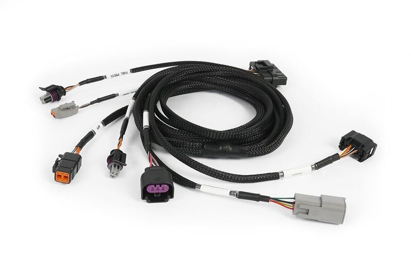 This harness expands the functionality of a Nexus Plug-in ECU by adding connections for a wideband O2 sensor, air temperature sensor, flex fuel sensor, fuel pressure sensor, oil pressure sensor, APP sensor, and DBW throttle through the ECU's auxiliary plug.