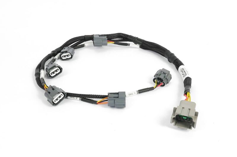 This sub-harness connects six R35 COP ignition coils to the ignition breakout connector on the main terminated harness. Each coil plug is clearly labeled, making installation straightforward and ensuring accurate cylinder identification for dependable ignition performance.