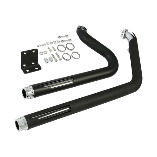 Attitude Inc Exhaust Headers Black Drag with Heat Shields ,Smooth Chrome Tip1986-2017 softail For Harley