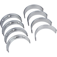 These Tri-Metal 77 engine bearings combine the strength of a copper-lead alloy layer with steel backing and an electroplated babbitt metal. The steel backing provides strength and durability; the babbitt overlay provides the critical surface characteristics of slipperiness and conformability. This ideal design has properties not even found in many original equipment bearings. Clevite offers main bearings, rod bearings and cam bearings in this series. H Series - Best to start with when unsure which bearing to choose. Medium level of eccentricity and high crush. Enlarged chamfers for greater crankshaft fillet clearance. Made without flash plating for better seating. Use with crankshafts that have oversized fillets. Use with engines that run mid-high RPM range. Contact patterns should ideally cover 2/3 to 3/4 of the bearing surface. P Series - Typically the greatest level of eccentricity. Rods and mains have high crush for maximum retention. Most are fully grooved to maximize oil flow to rod bearings. Reduced overlay thickness to prevent overlay fatigue. Use where extremely high RPMs cause severe rod bore close- Use where higher eccentricity is desired to narrow bearing contact patterns. V Series - This series essentially duplicates Clevite's former Vandervell parts. Typically low to medium eccentricity. Not available with oversized chamfers. No flash plating on the steel back. All Clevite main bearing sets use a single-piece thrust bearing. Narrowed parts available to accommodate increased crankshaft fillet clearance. Lead-indium overlay offers slightly better conformability. M Series - These are special purpose bearings having a nominal .005 thick Babbitt lining on a hardened steel back. They are intended mainly for Blown Fuel engines where severe crankshaft deflections cause edge loading of the bearings. Under these operating conditions bearing service life will be very short. Frequent inspection and replacement is recommended. Part Number Key H - High-Performance. HD - High-Performance bearing with dowel hole. HK - High-Performance bearing with moly/graphite coating. P - Standard Clevite 77 tri-metal bearing. M - Blown Fuel Engine bearing for severe crankshaft deflections & edge loading. N - High-Performance Narrowed for greater crankshaft fillet clearance. HG - High-Performance full angular grooved bearing. V - High-Performance with Lead Indium overlay (On Main Sets this indicates partial groove also). VG - High-Performance with Lead Indium full angular grooved bearing. D - Bearing has a dowel hole. K - Tri-Armor coated bearing. X - Bearing has .001 more oil clearance than standard. XX - Bearing has .002 more oil clearance than standard. A or AL - Indicates Aluminum bearing material. Note: Clevite main and cam bearings are priced as sets. 'H' rod bearings are priced each.