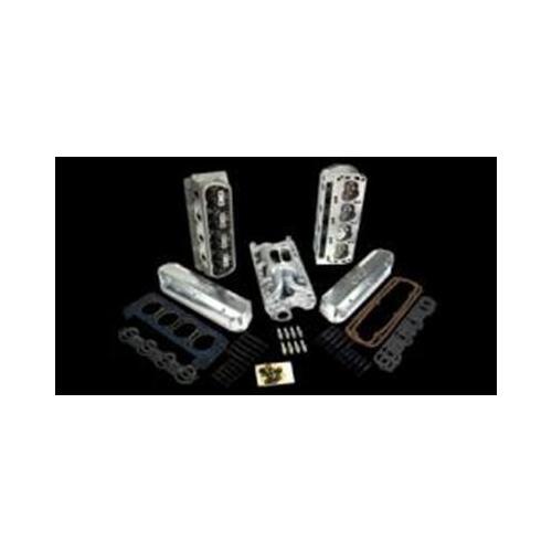 These Dart SHP Special High Performance aluminum top-end kits for Chevy combine great performance, the weight savings of aluminum, and incredible affordability. They include a pair of fully assembled Dart SHP aluminum cylinder heads, matching dual plane intake manifolds, stamped steel chrome valve covers, and ARP performance head bolts. To install your new kits, you can use the included head, intake, and valve cover gaskets. Best of all, the Dart SHP aluminum top-end kits for Chevy are available in your choice of 64cc or 72cc with standard single or dual valve springs.