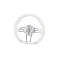 Striking Flaming River Navigator steering wheels combine the comfort of a leather grip with the elegance of wood trim accents. The center spokes are made of brushed aluminum for a tasteful interior accent, and a dish design offsets the wheels for a depth of styling that is very innovative.