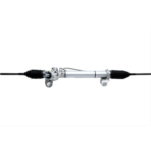 Flaming River offers all-new replacement front steer power rack and pinions for the 1994-2004 SN-95 Mustang. They feature precision robot-welded design for strength, durability, and direct fit. Their diecast housing offers the same line position as OEM and adjustable pinion housing for easy installation. These rack and pinions are popular with many of the top chassis builders. Additional details: * All new components, including valve, piston, seals, bearings and bushings, and pinion and rack gears * Same line position as original 1979-93 Mustang * Stainless steel braided hoses * Full turning radius and 6.00 in. of travel * 12:1 ratio / 2.7 turns lock to lock * Fluid and pressure tested and certified before leaving the factory