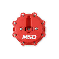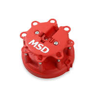 MSD Distributor Cap, GM Window, Female, Socket-Style, Red, Clamp-Down, Pro-Billet, Billet, GM, V8, Each