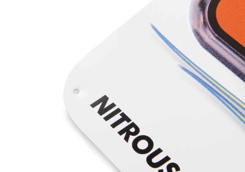 This 24" x 14" NOS metal sign with embossed logo is a must for any NOS enthusiast.