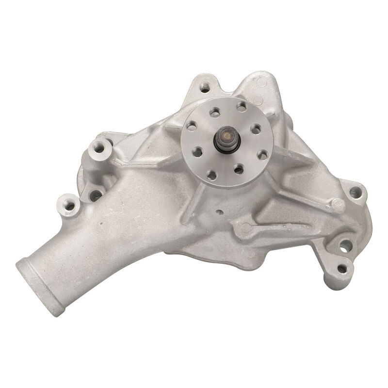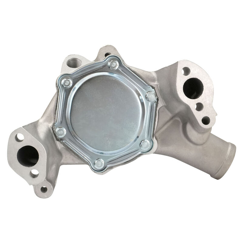 Proflow's Ultra Cool cast aluminium water pumps are ideal for street use. They feature a stamped steel impeller that provides optimum water flow, while consuming less horsepower than stock pumps. The Ultra Cool pumps also feature a heavy-duty shaft, bearing, and seal. Ultra Cool aluminium pumps weigh approximately 30 to 50 percent less than stock iron pumps, and have an exclusive counter bore to keep the bearing from walking in the housing. They come in raw or a black powder coated finish.