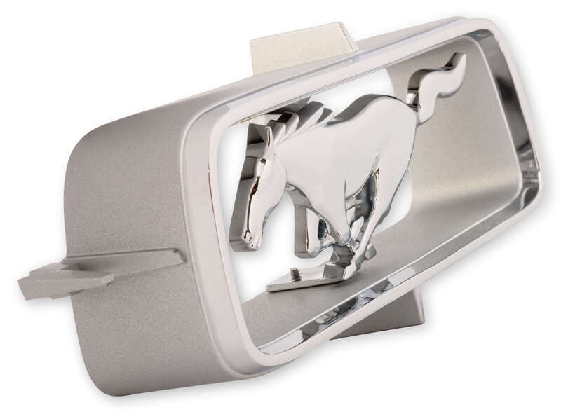 A beautiful, high-quality Scott Drake reproduction of the right-facing horse and corral grille emblem. Located in the center of the 1967 Mustang's standard grille, this replica has been enhanced since its original production by having a show-quality chrome finish. This grille emblem is a direct-fit replacement, easily installed with the included set of mounting nuts and studs.