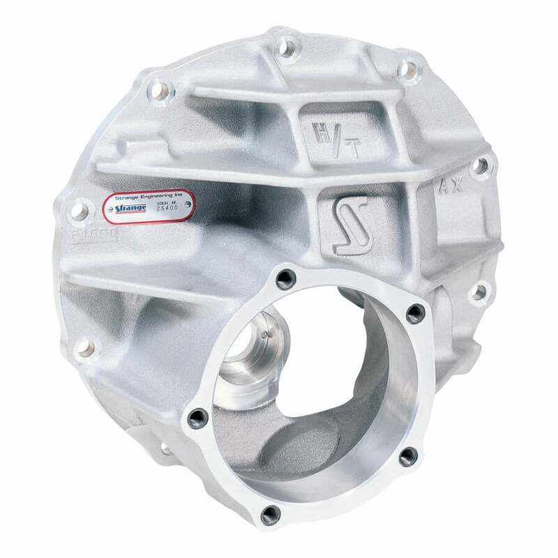Swap out your iron case for weight savings and added strength! You can save 20 lbs. of ugly weight with Strange 9 in. aluminum cases. Machined from high-tensile aluminum alloy, they're actually stronger than standard Ford iron cases. They come with billet aluminum bearing caps. A word of caution--because aluminum is less rigid than cast iron, ring and pinion gear life will be less than with nodular iron cases due to case deflection.