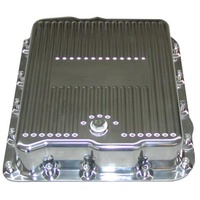 Investing in TCI transmission pans ensures the longevity of your transmission. They offer a selection of designs, depths, materials, and finishes to keep your transmission cooler and your undercarriage looking good. Skip the pans of lesser quality doomed to warp and leak; choose the policy of lasting performance from TCI transmission pans. TCI cast aluminum pans feature: * Exterior cooling fins wick away and dissipate heat * Provides additional strength and rigidity to transmission case * Ensures long transmission service-life * Include all required accessories and hardware necessary for installation TCI Max-Cool aluminum pans feature: * Black powdercoated finish * Large fluid capacity reduces internal transmission temperature * Exterior cooling fins wick away and dissipate heat * Aircraft-quality aluminum construction for strength and durability * Magnetic drain plug TCI polished die-cast aluminum pans feature: * Thicker than stock pans * Finned and polished to a high luster * Stock depth to avoid ground clearance issues * Includes drain plug for simpler fluid and filter changes * Includes necessary gaskets, filters, and installation hardware TCI chrome-plated steel pans feature: * Stock depth is easy to install * Includes drain plugs * Thicker than stock for added durability * Chrome prevents rust and adds show quality looks