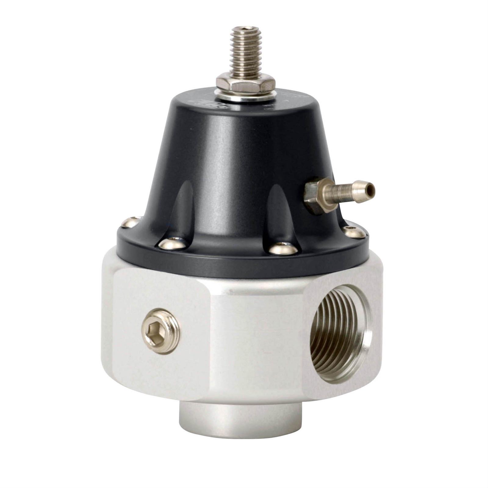 High-performance fuel pressure regulator. Features special internals to handle all types of race fuels, 2 x AN -10 inlet ports, 1 x AN -8 outlet port, 30-70 PSI base pressure adjustments, 1:1 ratio. APPLICATIONS: Ideal for race cars with up to 3000hp fuel systems. SUPPLIED WITH: Mounting bracket, vacuum fitting, gauge port blank.