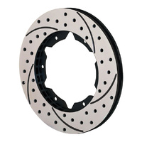 SRP Drilled Performance Rotors feature a specially engineered directional cross drill and face slot pattern that improve brake response and pad performance throughout the entire range of light to heavy braking. The venting and cleaning action of the holes and slots will reduce pad glaze and disperse gasses and heat generated during the pad to rotor interface. The holes and slots also inhibit irregular pad compound build-up on the rotor faces resulting in smoother engagement and improved pedal response in all conditions. The material removed also contributes to lower rotating and unsprung suspension weight.