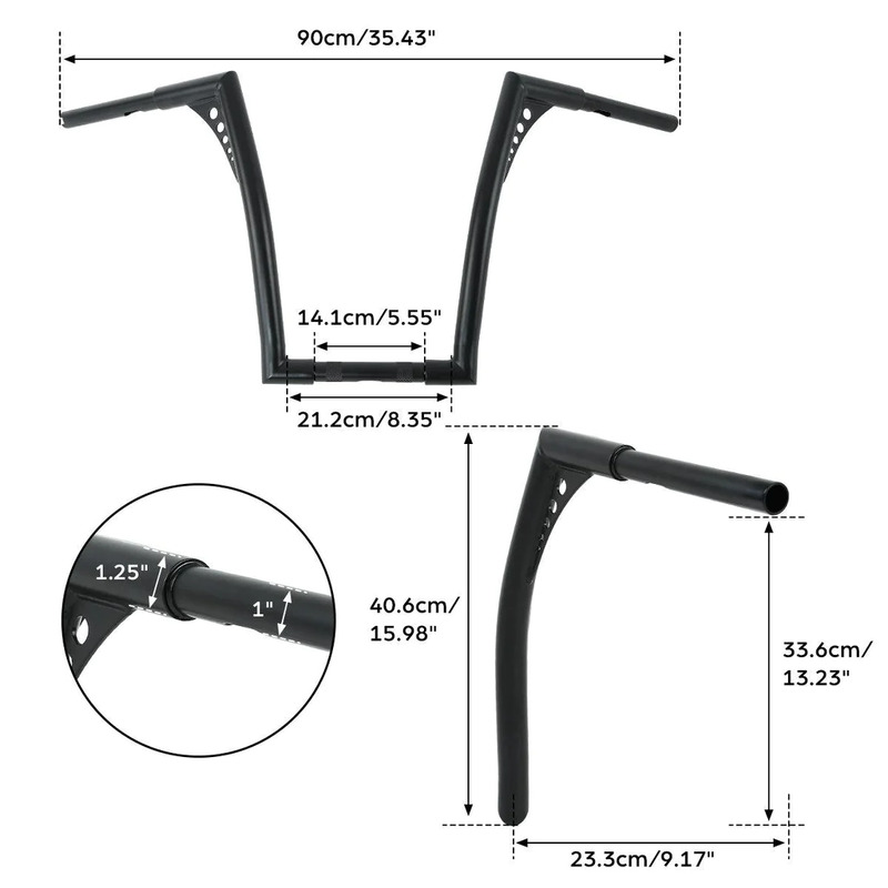 Attitude Inc Hefty Bars 16" Rise 1-1/4 Dia ,Handlebars, Matt Black Powder coat For Harley , Ape Hangers, each