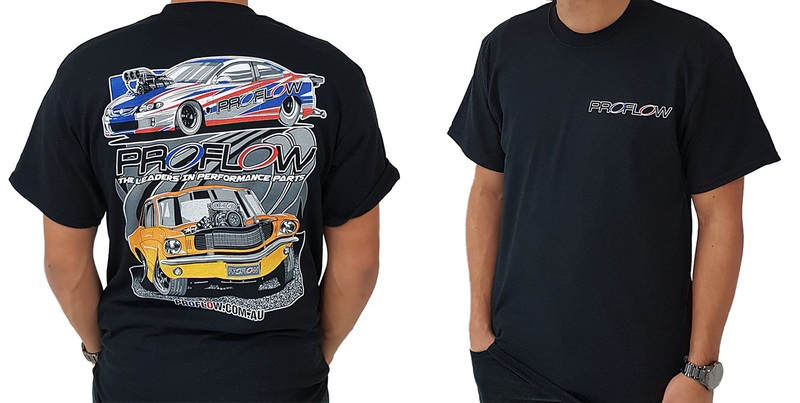 Proflow t-shirts are the perfect way to let everyone know where you go for high performance aftermarket parts and accessories. These shirts are currently available in two designs, the car mural design and the simpler logo design, catering for your specific look.