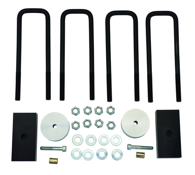 • EASY TO INSTALL -- Kit includes two rear blocks, four coated U-bolts and eight nuts that install easily