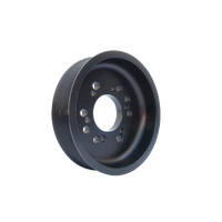 Universal, Flat-Backed 10-Rib Crank Pulleys. Drilled for 3-Bolt Chevy, 4-Bolt Ford, and 6-Bolt MOPAR configurations.