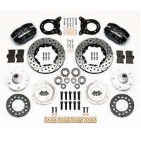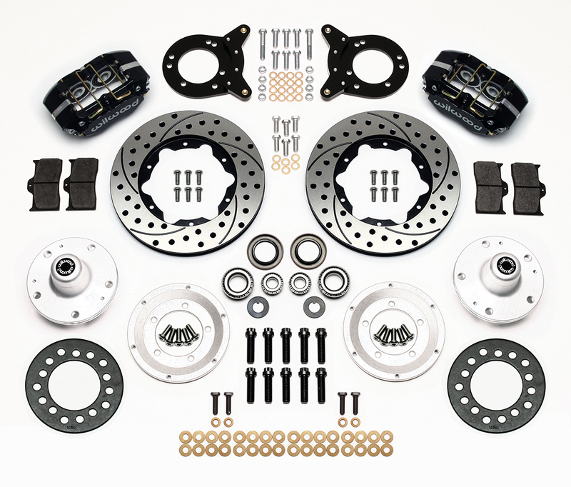 Wilwood's new DP-DB Pro-Series Front Hub Kits offer disc brake upgrade solutions for OEM spindles. We have completely redesigned our Pro Series line of brake kits using a larger 11" rotor and new forged aluminum hubs with the express purpose of maintaining the factory wheel position. Based on the venerable Forged Dynapro Dustboot caliper, these kits were developed for applications or locations that require or prefer a dust-sealed piston. Dust-booted aluminum pistons provide added protection against road or track born dirt and debris on low to intermediate temperature range applications that may also operate in harsh environments. Most vehicle applications require no modifications for installation, and provide plenty of clearance inside popular 15" wheels. DP-DB Pro-Series kits can be used with either manual or power boost master cylinders. Kits come complete with calipers, rotors, hub assembly, brackets and hardware. Kit installation requires purchase of additional brake lines shown below.